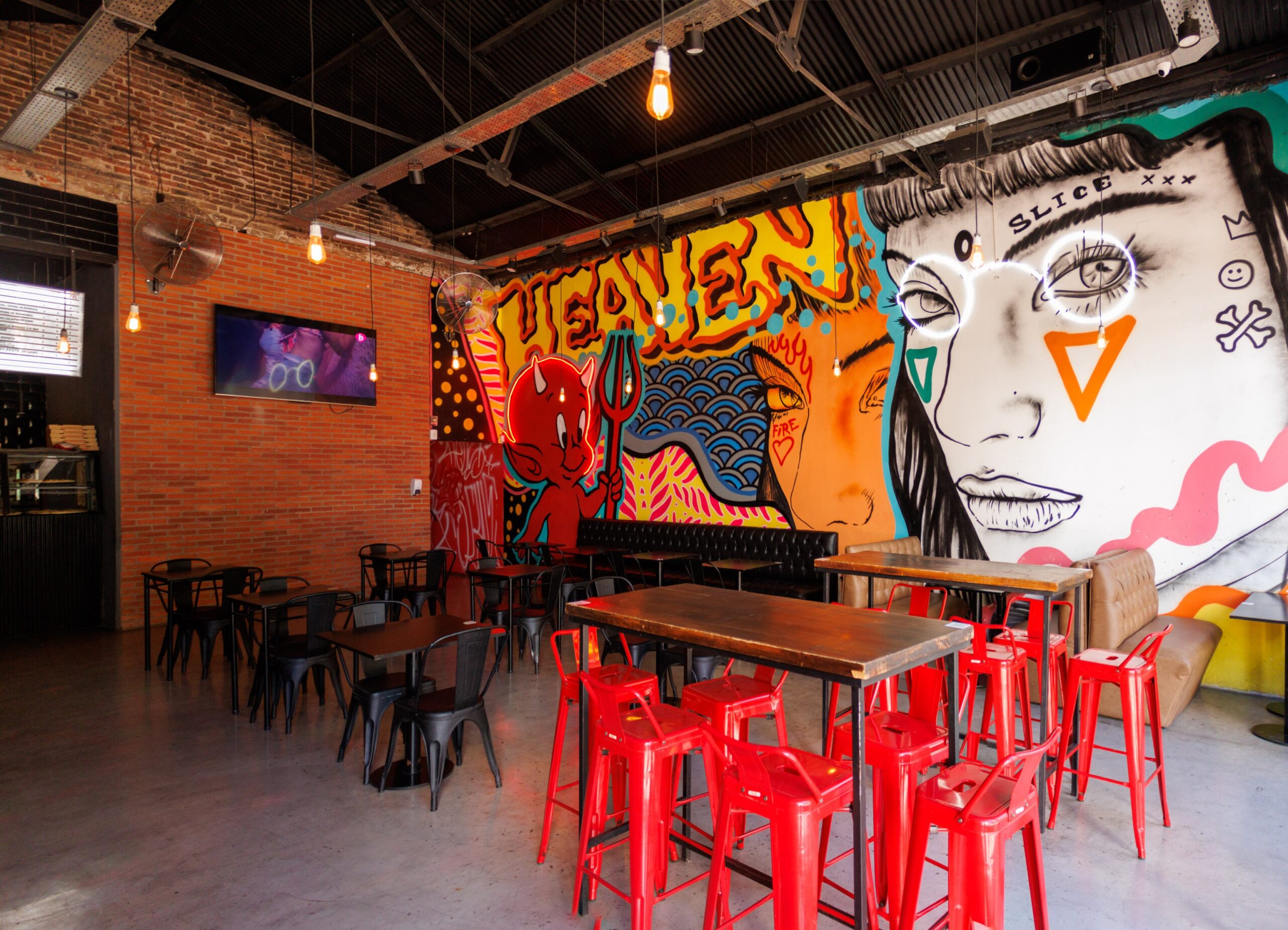 By the slice es el concepto Hell’s de pizza por porción gigante acompañado con cervezas premium, sidra tirada y amplia gama de etiquetas de vinos. En el local se vibra el espíritu de las calles de Nueva York en cada rincón.